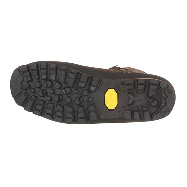 Nur an der Zunge kommt feuchtigkeitsableitendes Meshgewebe zum Einsatz. Außen zeigt sich geschmeidiges, gewachstes Nubukleder und ein umlaufender Geröllschutzrand. Die Sohlenkonstruktion dämpft und stabilisiert. Das ausgeprägte Profil der Gummilaufsohle (Vibram) sorgt für Trittsicherheit.